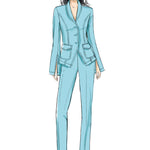 Fitted pants sewing pattern have curved waistband, front pin tucks and invisible zipper closure. View A pants have back pockets and side slits at leg. Make it an outfit with the matching jacket pattern B7026!