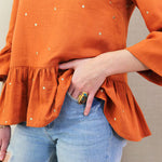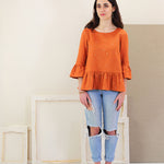 Relaxed pull-on peplum blouse and A-line dress feature a scooped neck and bust darts. The blouse, View A, includes ruffled peplum and sleeve as well as a button-placket back detail. The A-line dress, View B, includes short sleeves, double-welt angled front pockets and a center-back seam. You’ll find so many ways to sew this versatile pattern, which also includes detailed instructions for doing a full bust adjustment.