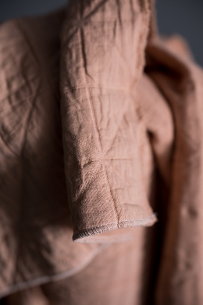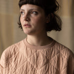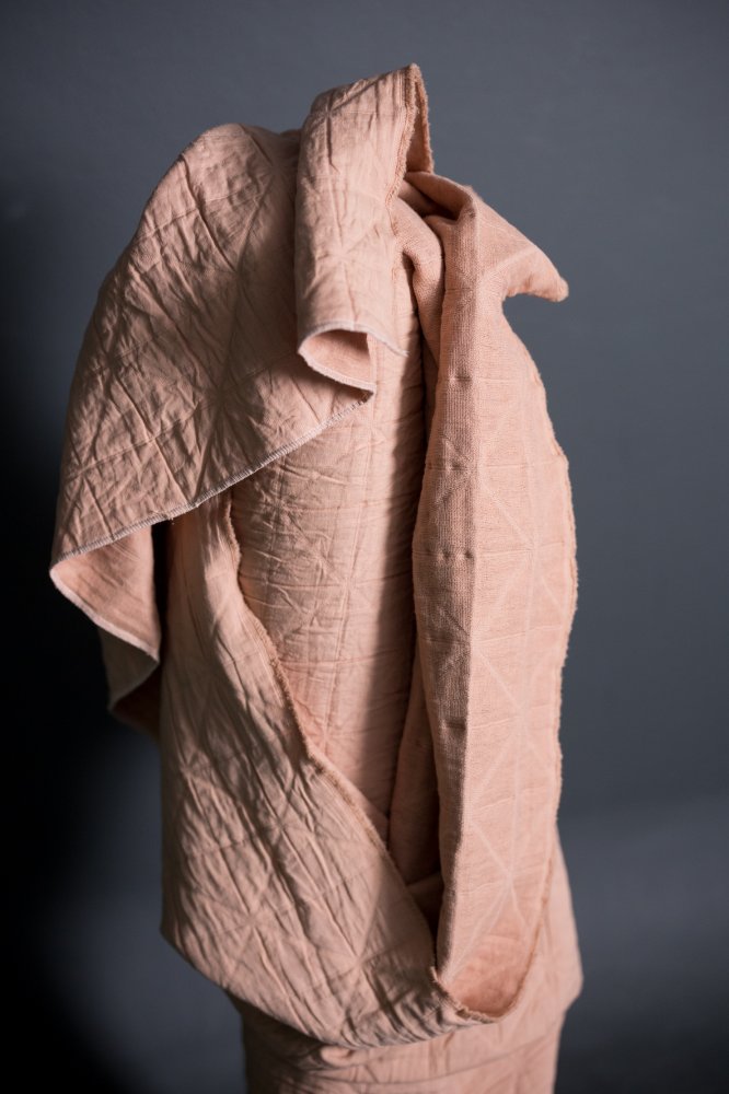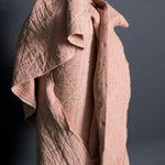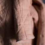 A warm chalky pink. This layered cotton has a jacquard weave that gives it a quilted look and feel.