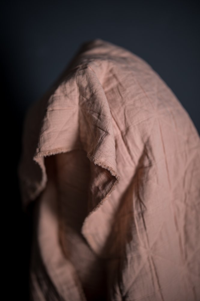 The reverse is a gauzy cotton, there is no batting in the middle of this cloth, the inside is made up of a series of thicker yarns, which gives it the quilted feel. The top is a fine cotton.