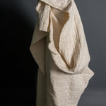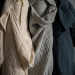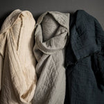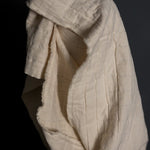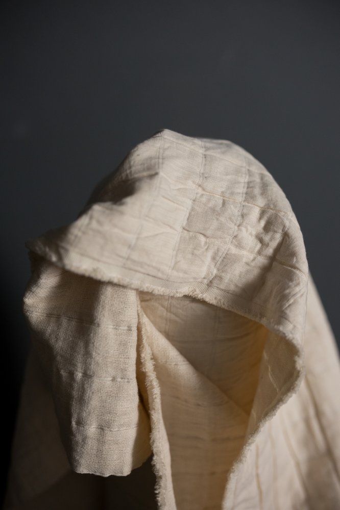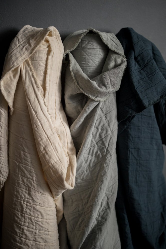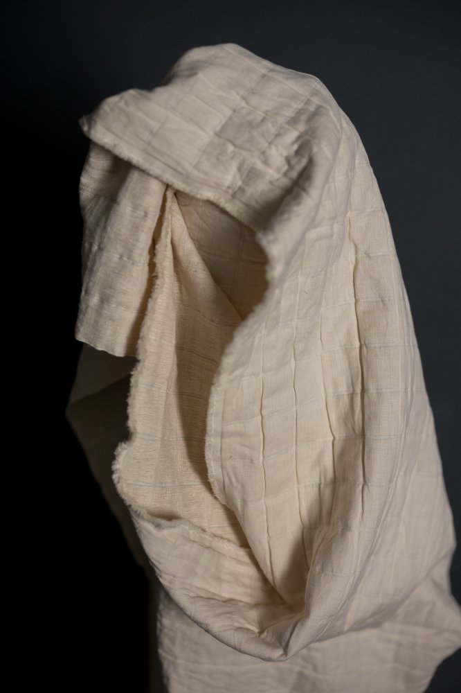 The reverse is a gauzy cotton, there is no batting in the middle of this cloth, the inside is made up of a series of thicker yarns, which gives it the quilted feel. The top is a fine cotton.
