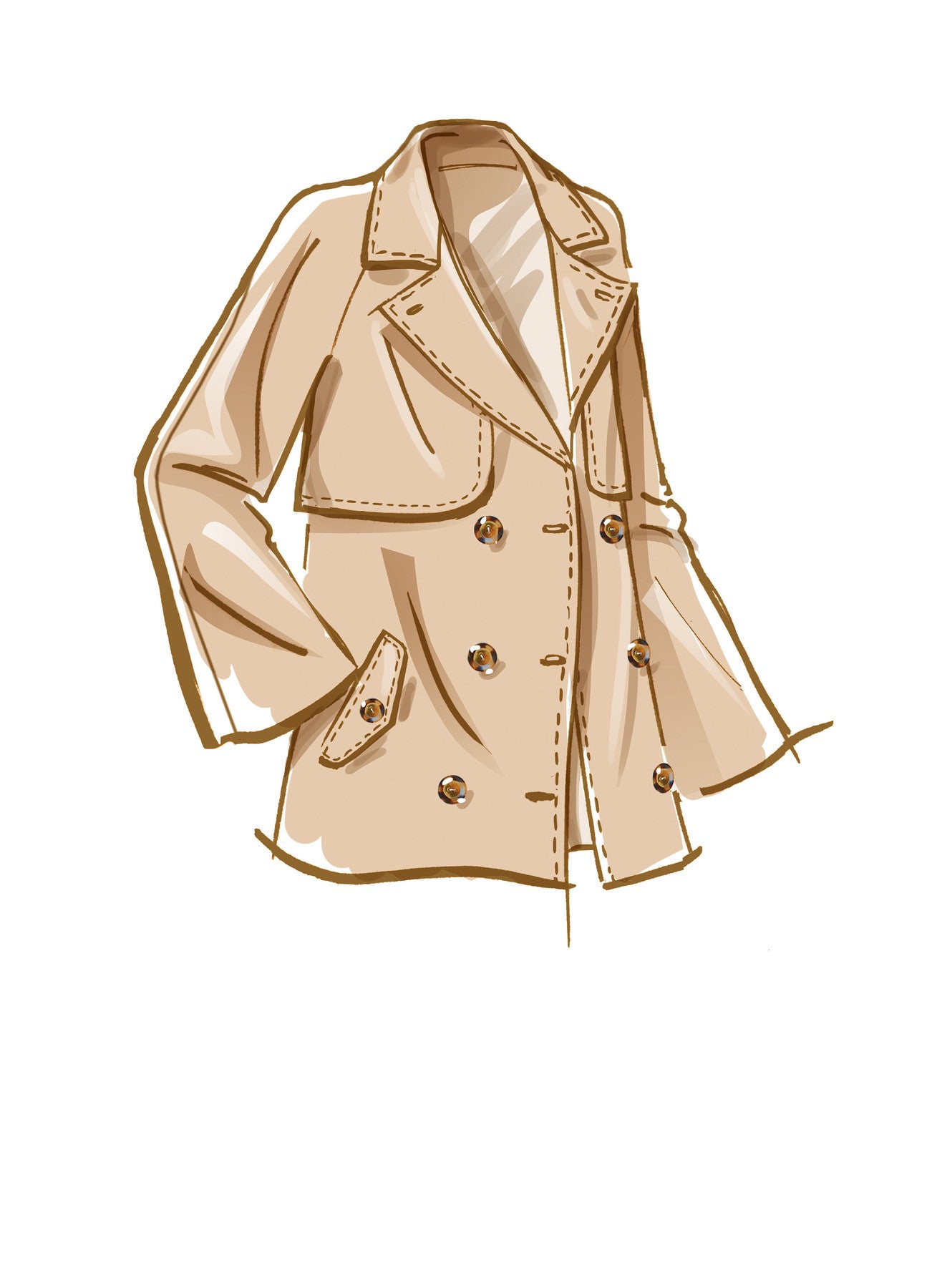 Suggested Fabrics: Wool Blends, Gabardine, Water Repellent Fabrics. Lining: Lining Fabrics.