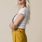 Inspired by a genius songwriter with timeless style, Mitchell is a modern interpretation of a classic pleated trouser. Elegant and comfortable with very special details, they are destined to become your new favourite bottoms.