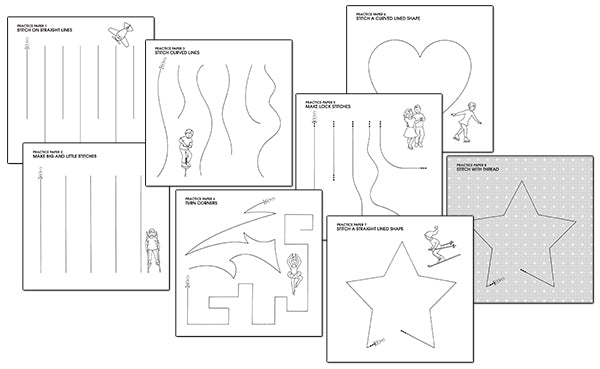 With a clear understanding of the concepts of sewing, and the skills developed through hand sewing and embroidery, children are now introduced to the sewing machine on an elementary level, substituting pictures for words, for repetition, and to help children who are learning to read. Silly names for machine parts help children remember.