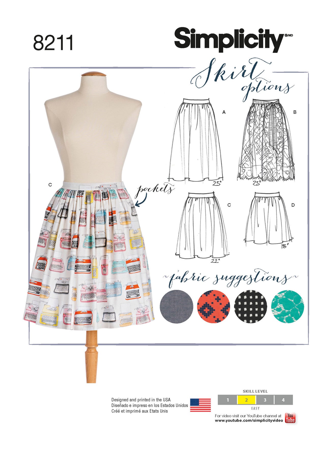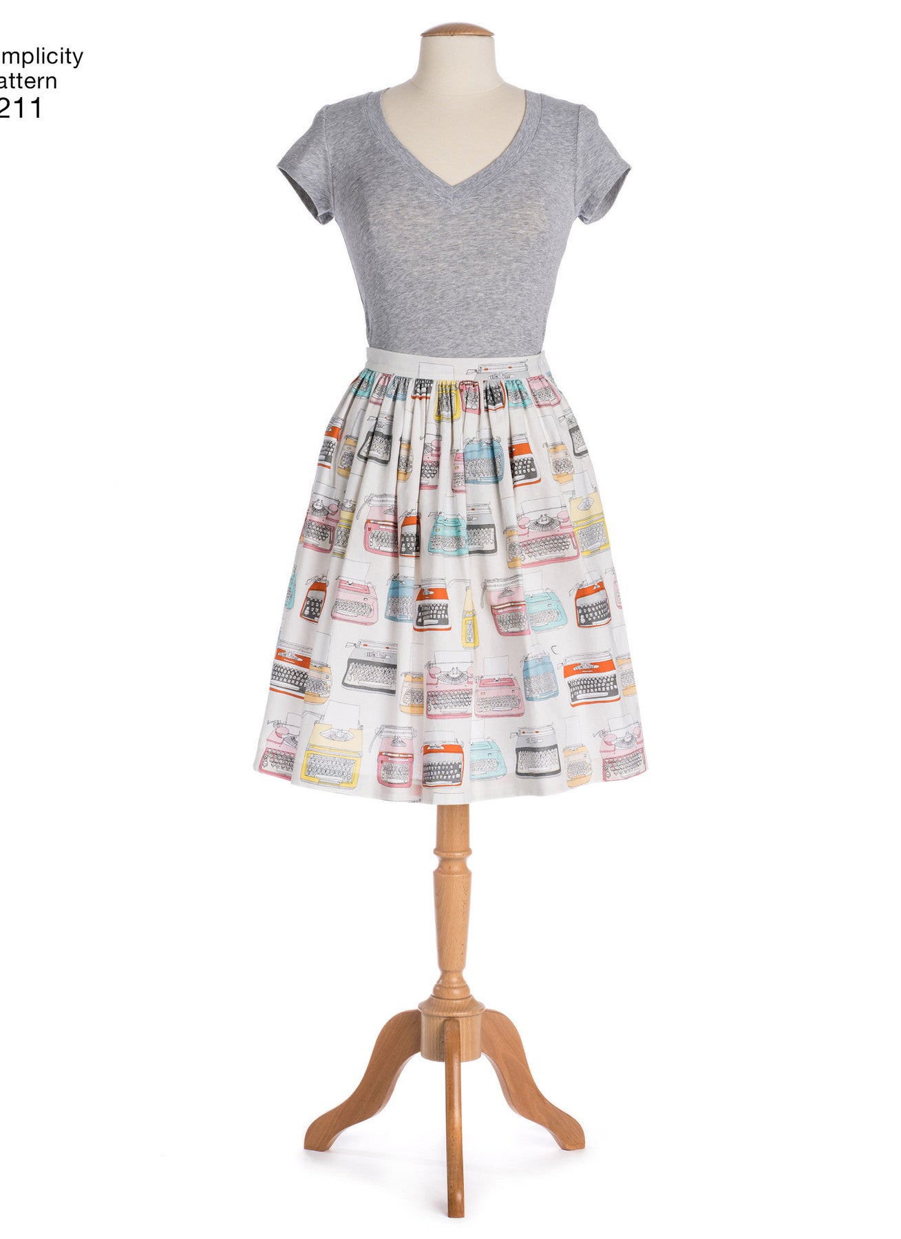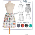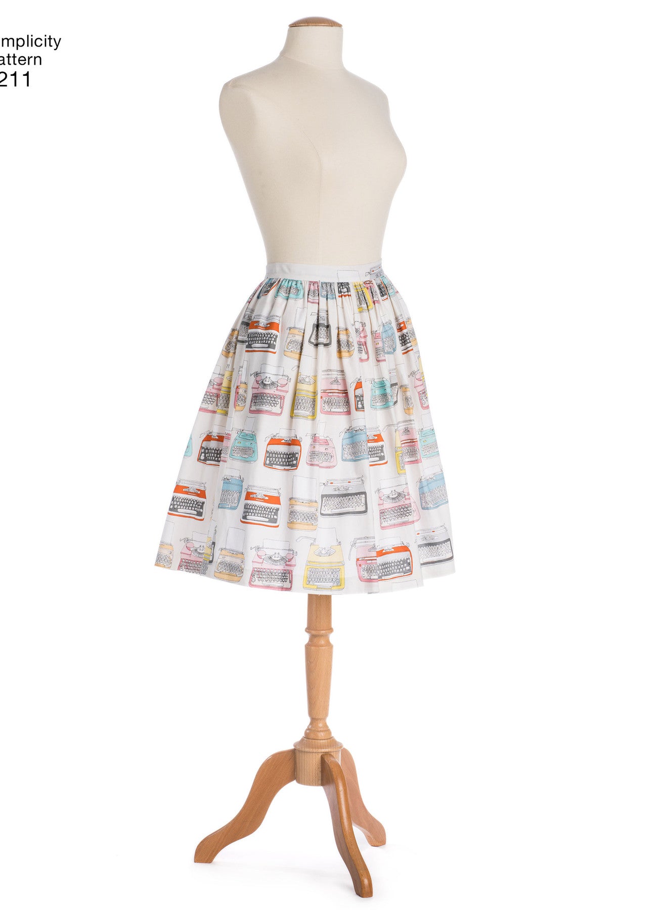 Misses' easy-to-sew dirndl skirts with grown-on waistband are the perfect feminine pieces to add to your wardrobe. Skirt in three lengths, midi with optional galoon edge lace overlay, just below or just above the knee. Make in a kitschy print for a truly unique look. Skirt also features pockets and invisible side zipper.