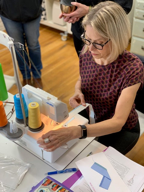 Get to know and use your serger-any make and model! This class is perfect if you have a new or “new to you” serger. It’s also a great way to decide which serger you want to buy if you don’t have one. Using a combination of slides, video-clips and demos Helen will help you demystify the many moving parts and how they work together. You will learn about easy threading, basic tension, 2, 3, and 4-thread stitches, simple flat-lock and the versatile rolled hem. You will be provided with fabric for samples and a notebook with instructions. If you need to borrow a serger, please let us know when you register.