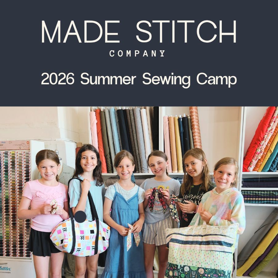 Note: If your child has not taken classes at Made Stitch Company, they must first complete our Beginner Workshop before coming to camp. This is a 2-hour class in which students learn the basics of the sewing machine. We have many workshops offered before camp to fit everyone in! Register for a Beginner Workshop here.